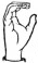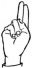 На ћирилици написано КОНСТАНТИН ЛУДОШКИ састоји се из 17 слова [?]. Исписано ћириличном једноручном азбуком за глувонеме: